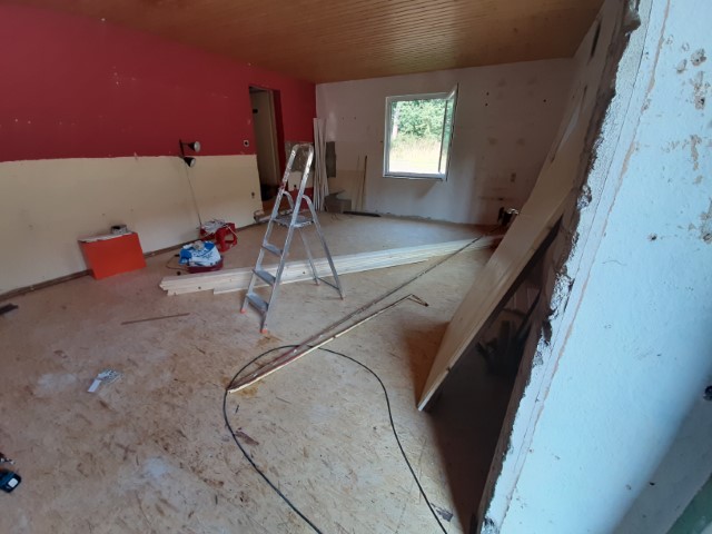Um 14:30 Uhr traf man sich, um den Fußboden frei zu bekommen. Hier mussten abgerissene Holzvertäfelungen entsorgt werden, sowie gebrochene Fußbodenlatten ersezt. Einmal durchgefegt und schon sind die vorbereitenden Maßnamen abgeschlossen. Die Planung zur Beschaffung der OSB Platten, die als Oberschicht des Fußbodens verbaut werden sollen, wurden zudem auch noch abgeschlossen.