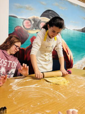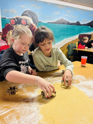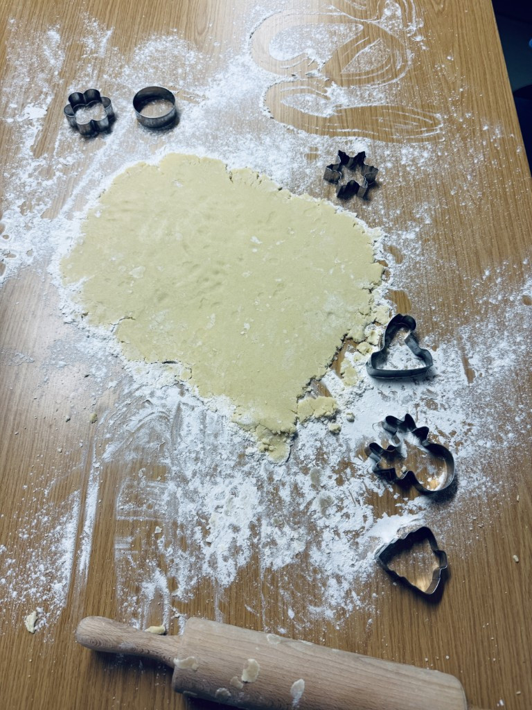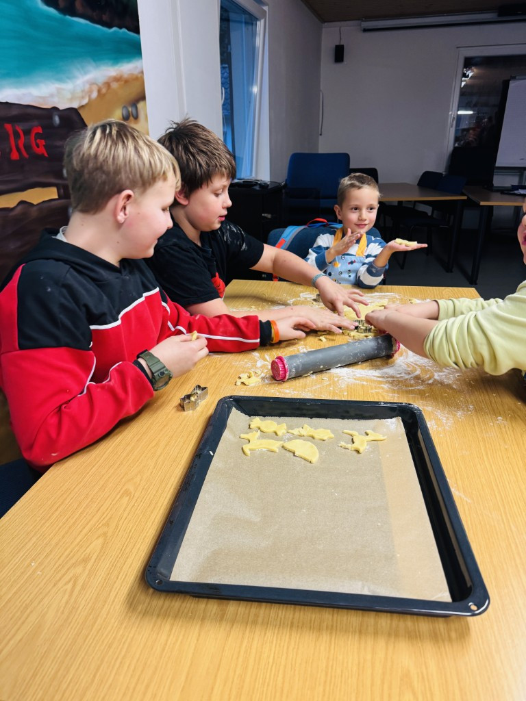 Mit Mehl an den Nasen und Teig an den Fingern ging es ans Werk: Teig wurde geknetet, ausgerollt, ausgestochen und anschließend liebevoll (und manchmal sehr bunt) verziert. Ob Stern, Herz oder Rentier – jedes Plätzchen war ein echtes Unikat. Zwischendurch wurde natürlich auch genascht, schließlich musste die Qualität streng kontrolliert werden.